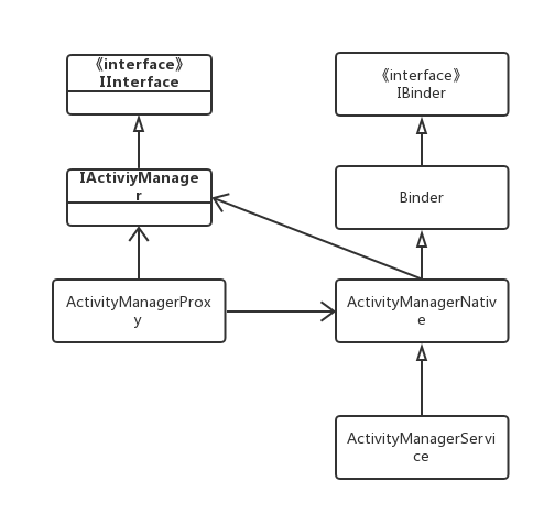 ActivityManager 是 Android 中管理和维护 Activity 的相关信息的类,为了隔离它与 ActivityManagerService,有效降低二者的耦合,在这中间使用了 ActivityManagerProxy 代理类,其抽象主题类是 IActivityManager 接口,所有对 ActivityManagerService 的访问都转换成对代理类的访问,这样 ActivityManager 就与 ActivityManagerService 解耦了。