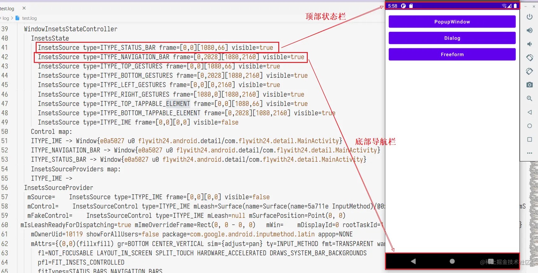 当 System bar 隐藏时 getInsets() 获取的高度为 0,如果想在隐藏状态时也能获取高度,可以使用 getInsetsIgnoringVisibility() 方法