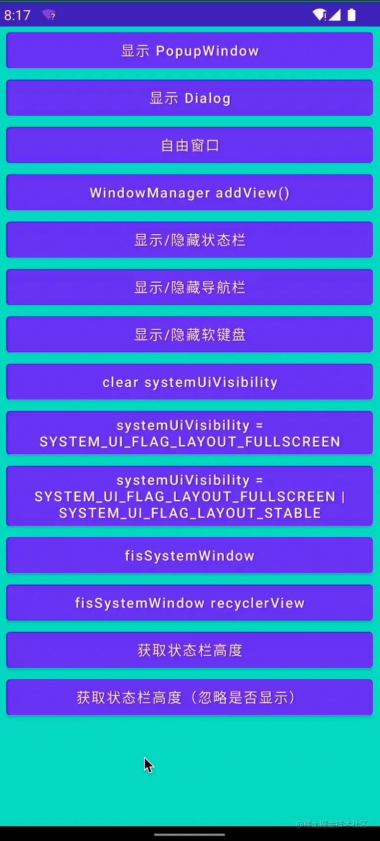 如果想了解这些 flag 的效果可以参考 # Android setSystemUiVisibility详解。